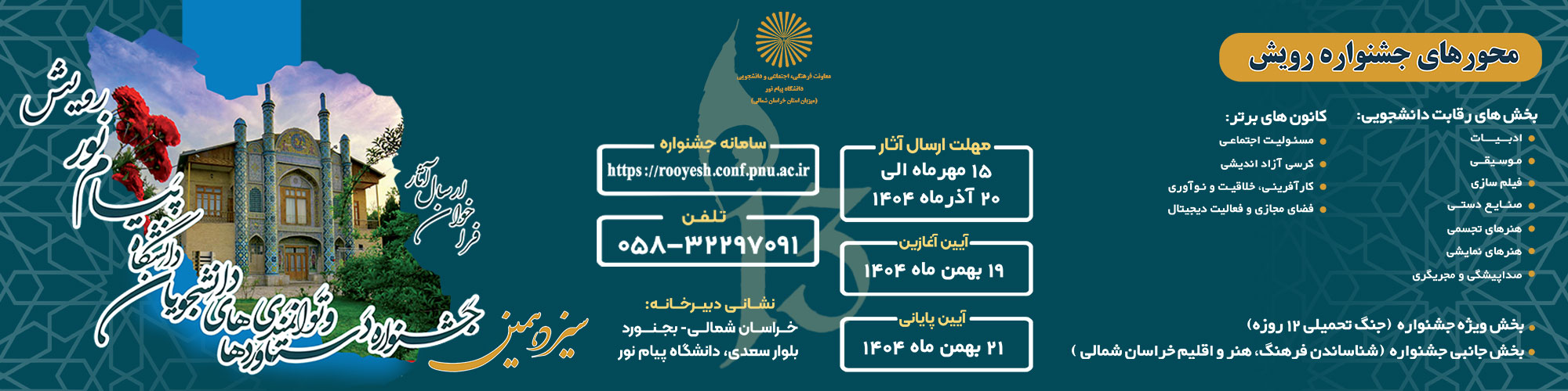 جشنواره رویش 1404 دانشگاههای پیام نور کشور به میزبانی خراسان شمالی برگزار می گردد.